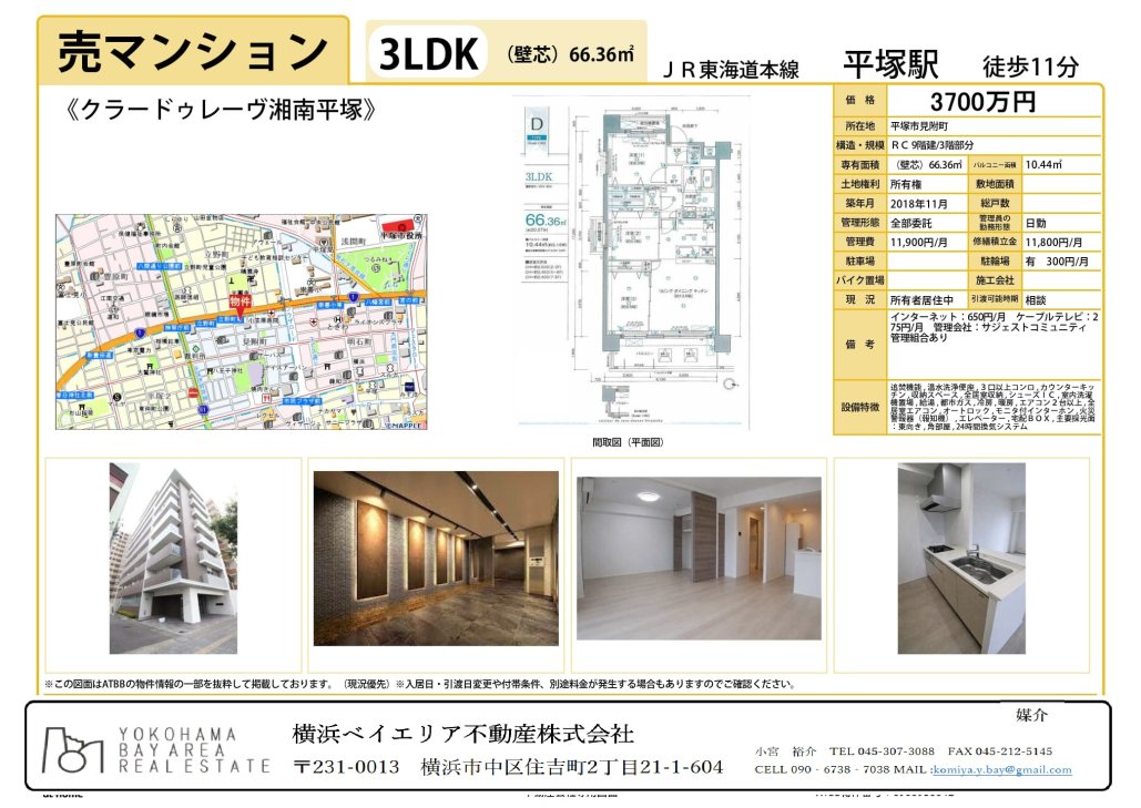 REAL ESTATE 不動産情報 2026.03.13 ■クラードゥレーヴ湘南平塚■3700万円/2018年築ペット可♪ 居住中のお部屋です。ご内見希望の際には、ご連絡ください。売主様と調整の上、ご対応します。 OUTLINE 物件概要 ACCESS MAP アクセスマップ お客様の情報・お問い合わせ内容をご入力ください お問い合わせ物件名 ■クラードゥレーヴ湘南平塚■3700万円/2018年築ペット可♪ お名前(必須) フリガナ(必須) メールアドレス(必須) PCメール推奨 ※お問い合わせ完了後に確認メールをお送りいたします。 メールアドレス(確認用)(必須) ご住所 〒 ※ハイフンなし 例)神奈川県横浜市中区住吉町2-21-1-604 電話番号(必須) ※ハイフンなし FAX ※ハイフンなし 弊社からの返信方法 電話 FAX 郵送 E-mail 電話での返信希望曜日・時間 ご希望曜日: 指定なし 月曜日 火曜日 水曜日 木曜日 金曜日 土曜日 日曜日 ご希望時間: 指定なし 午前 午後 17時以降 その他ご要望など 備考 yokohama-bay.jpの指定受信設定を行ってください。 ※携帯電話のメールアドレスをご入力いただいた場合、迷惑メール対策などでドメイン指定受信を設定されている方は、弊社からのメールが届かないことがあります。お手数ですがドメイン指定受信の設定を行ってください。 (C) YOKOHAMA BAYAREA REALESTATE